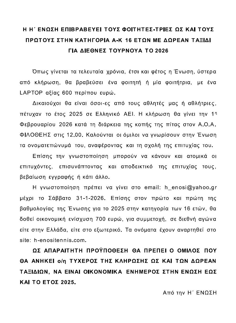 20/01/2026 09:39ΝΕΑ ΠΡΟΚΗΡΥΞΗ